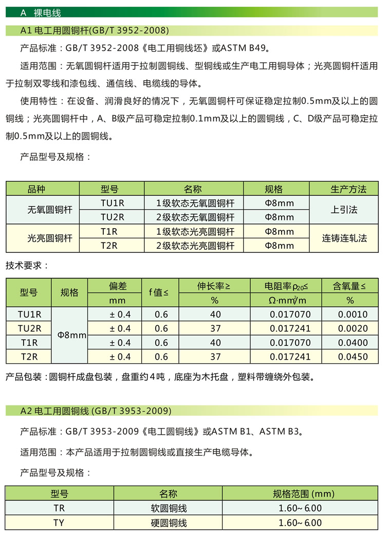 二、使用范圍 本產(chǎn)品適用于拉制圓銅線,型銅線和其它電工用銅導(dǎo)體的無氧圓銅桿和光亮圓銅桿。