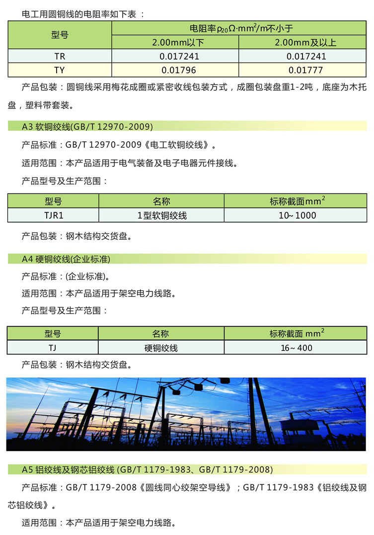 一、產(chǎn)品標(biāo)準(zhǔn) GB/T1179-2008《圓線同心絞架空導(dǎo)線》;GB/T1179-1983《鋁絞線及鋼芯鋁絞線》。
