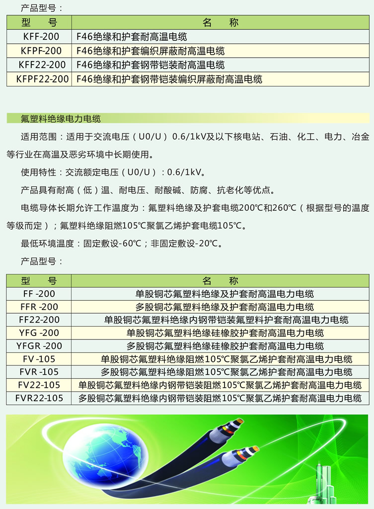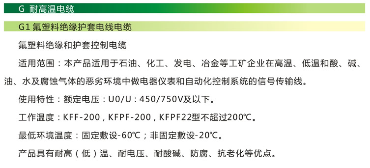 二、使用范圍 本產(chǎn)品適用于高溫環(huán)境下額定電壓450/750v及以下控制、信號、保護(hù)及測量系統(tǒng)接線之用。